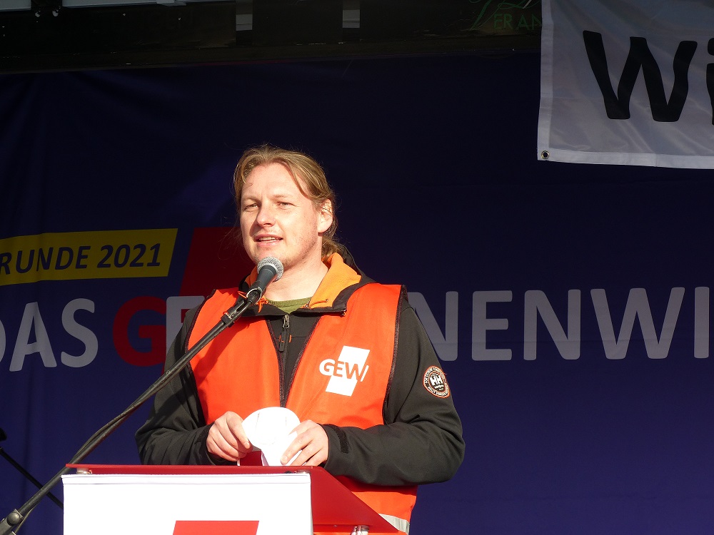 Und auch studentische Beschäftigte und wissenschaftliche Hilfskräfte an den Hochschulen haben es schwer: Sie üben unverzichtbare Tätigkeiten aus, sie unterstützen die Lehre, halten die Bibliotheken am Laufen und wirken an Forschungsprojekten mit. Ihre Arbeitsbedingungen sind jedoch nicht tarifvertraglich geregelt, sondern werden von den Hochschulen einseitig diktiert: „Im öffentlichen Dienst der Länder in Deutschland gibt es Beschäftigte, bei denen der Arbeitgeber mehr oder weniger nach Gutsherrenart über Länge der Arbeitszeit und Bezahlung verfügt. Und wenn man die Forderung ausmacht, bekommt die Antwort, dass sich mit einem Mindestlohn von 12 Euro dieses Problem wohl erledigt hätte. Wir wollen uns das nicht gefallen lassen,“ rief Eva Gerth von der Bühne.